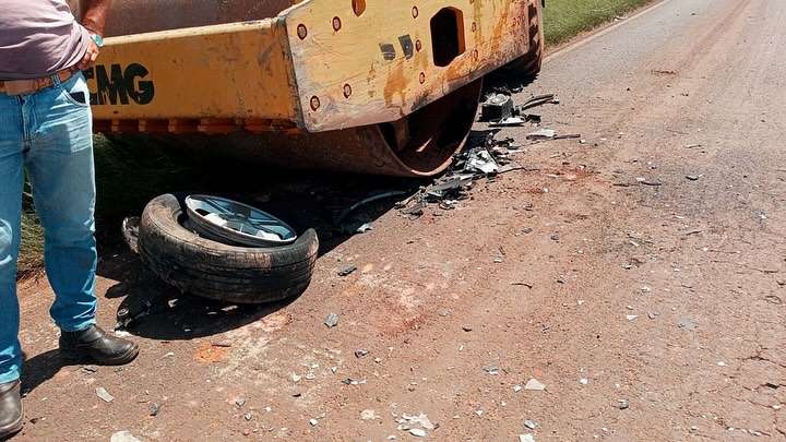 Homem fica ferido em acidente entre carro e rolo compactador na PR-281, em Chopinzinho